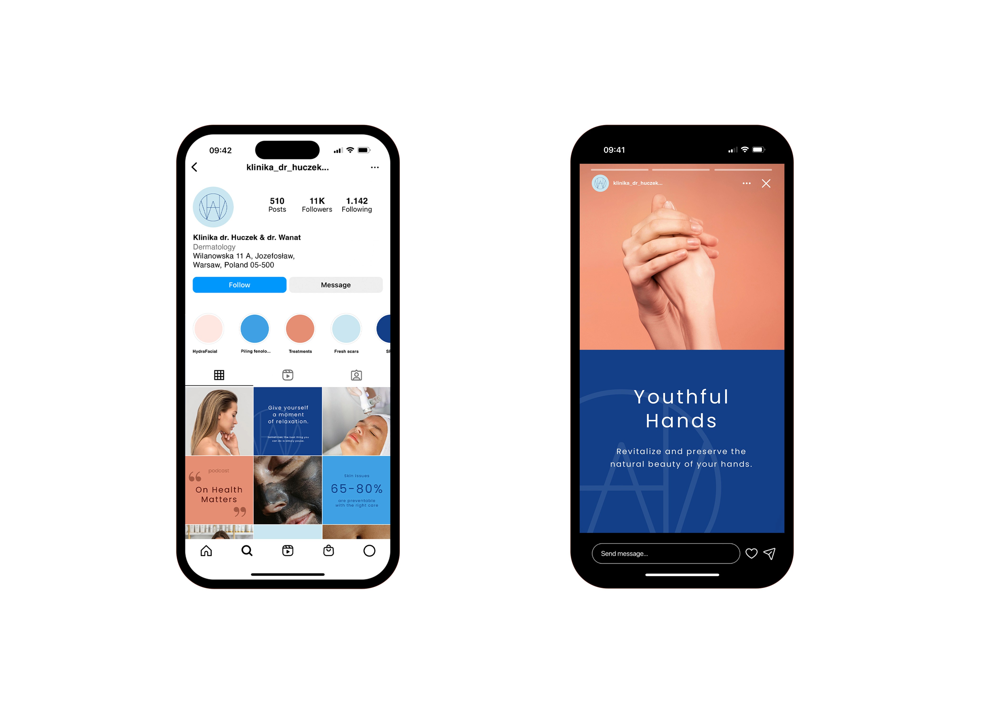 Klinika Dr. Huczek Dr. Wanat © offers advanced aesthetic treatments focused on enhancing natural beauty with precision. Staffed by certified, experienced doctors, the clinic ensures the highest standards of care. Its branding highlights healthy, radiant skin, reflecting pure beauty in real people.
